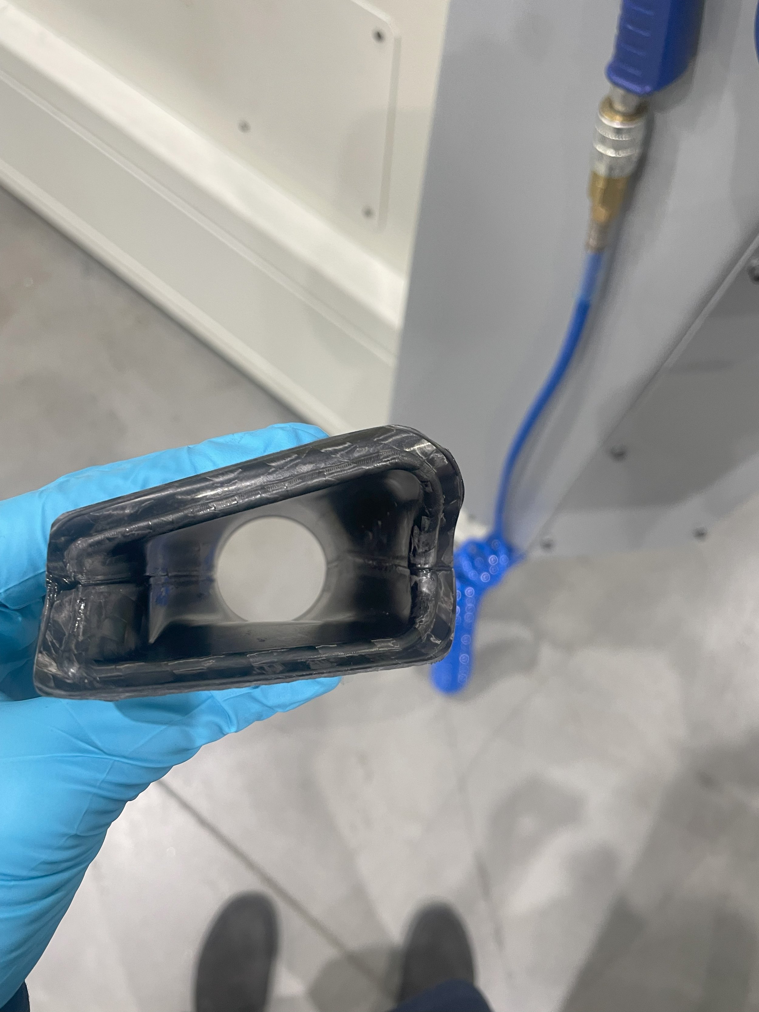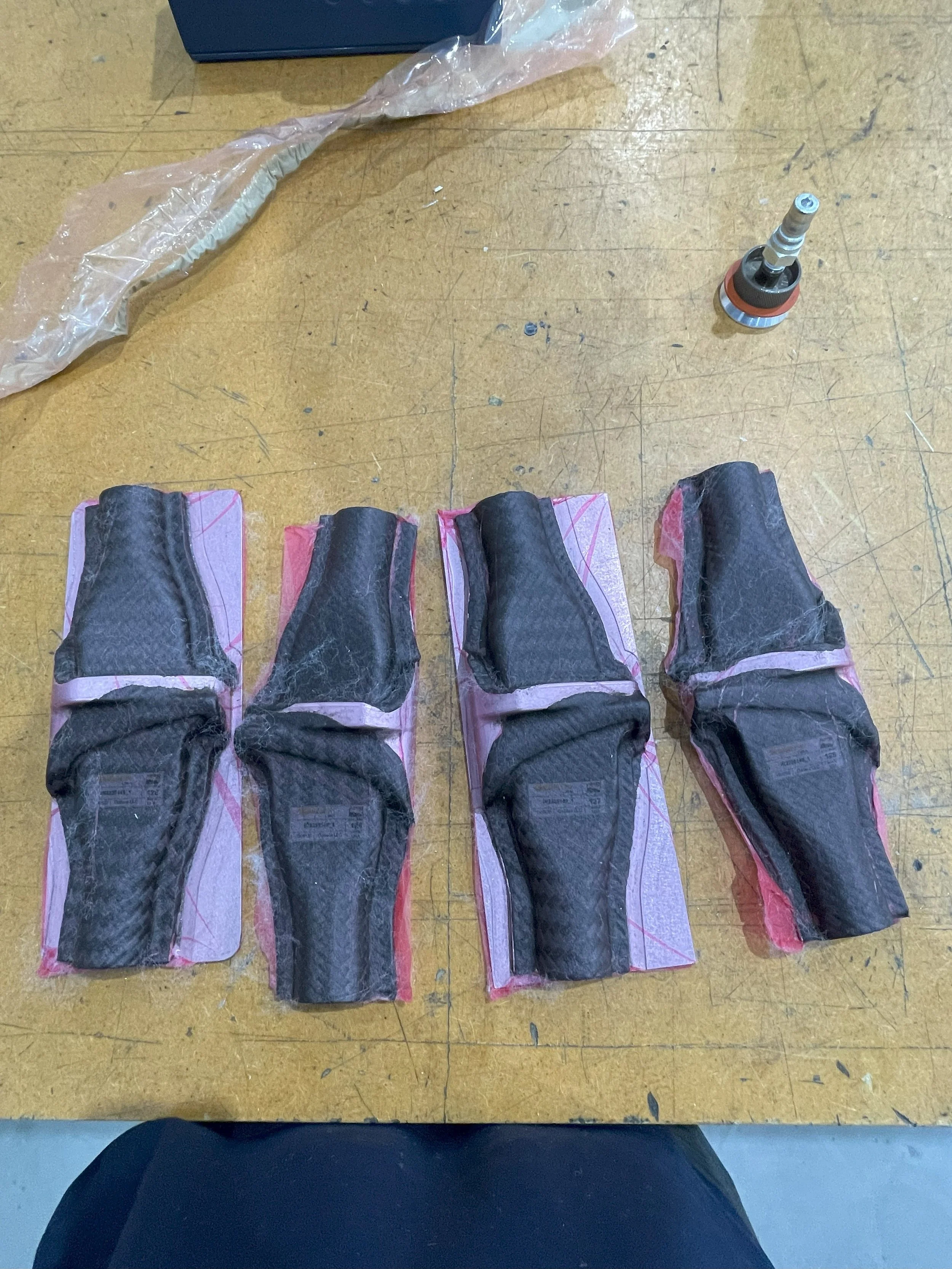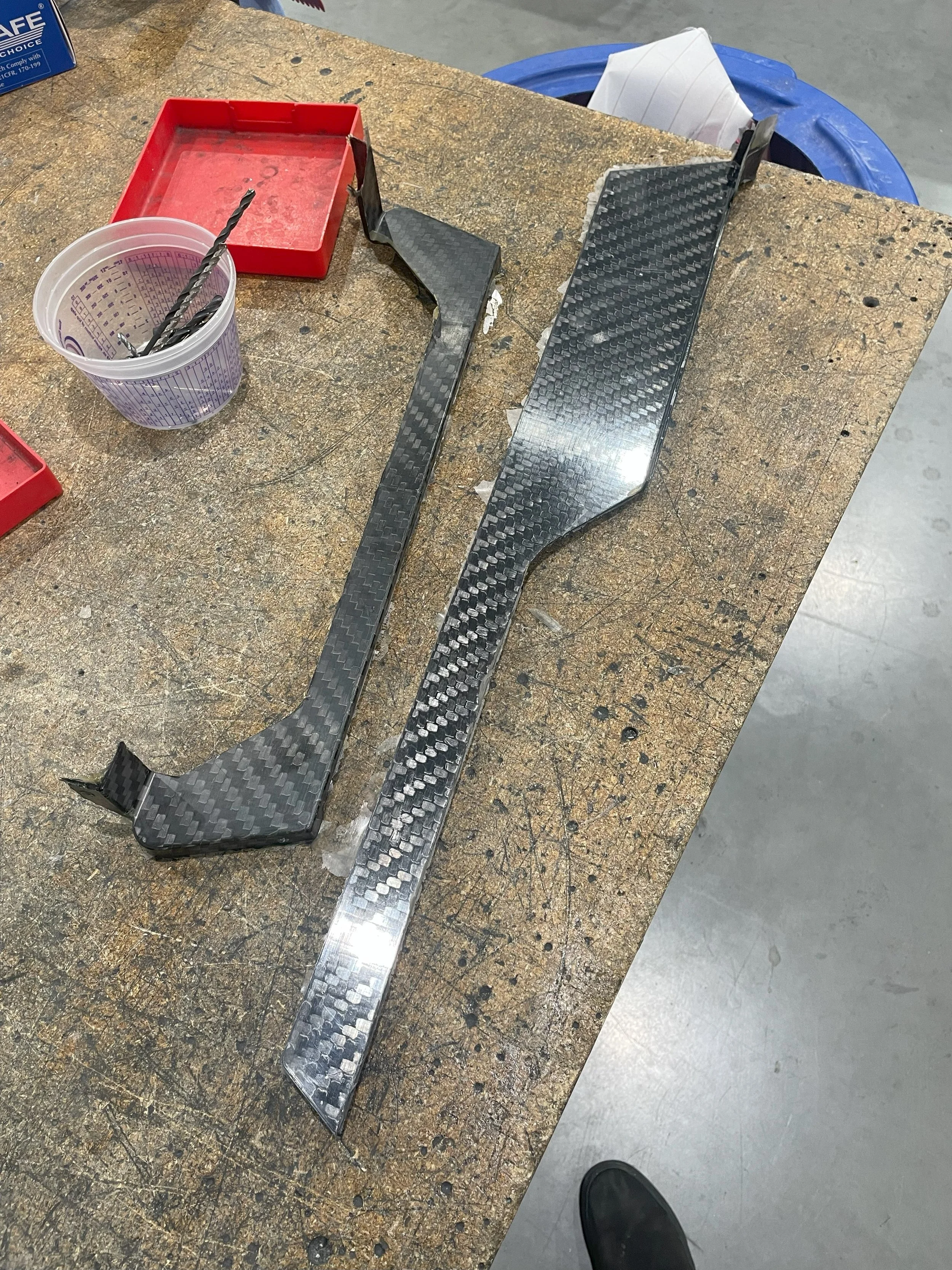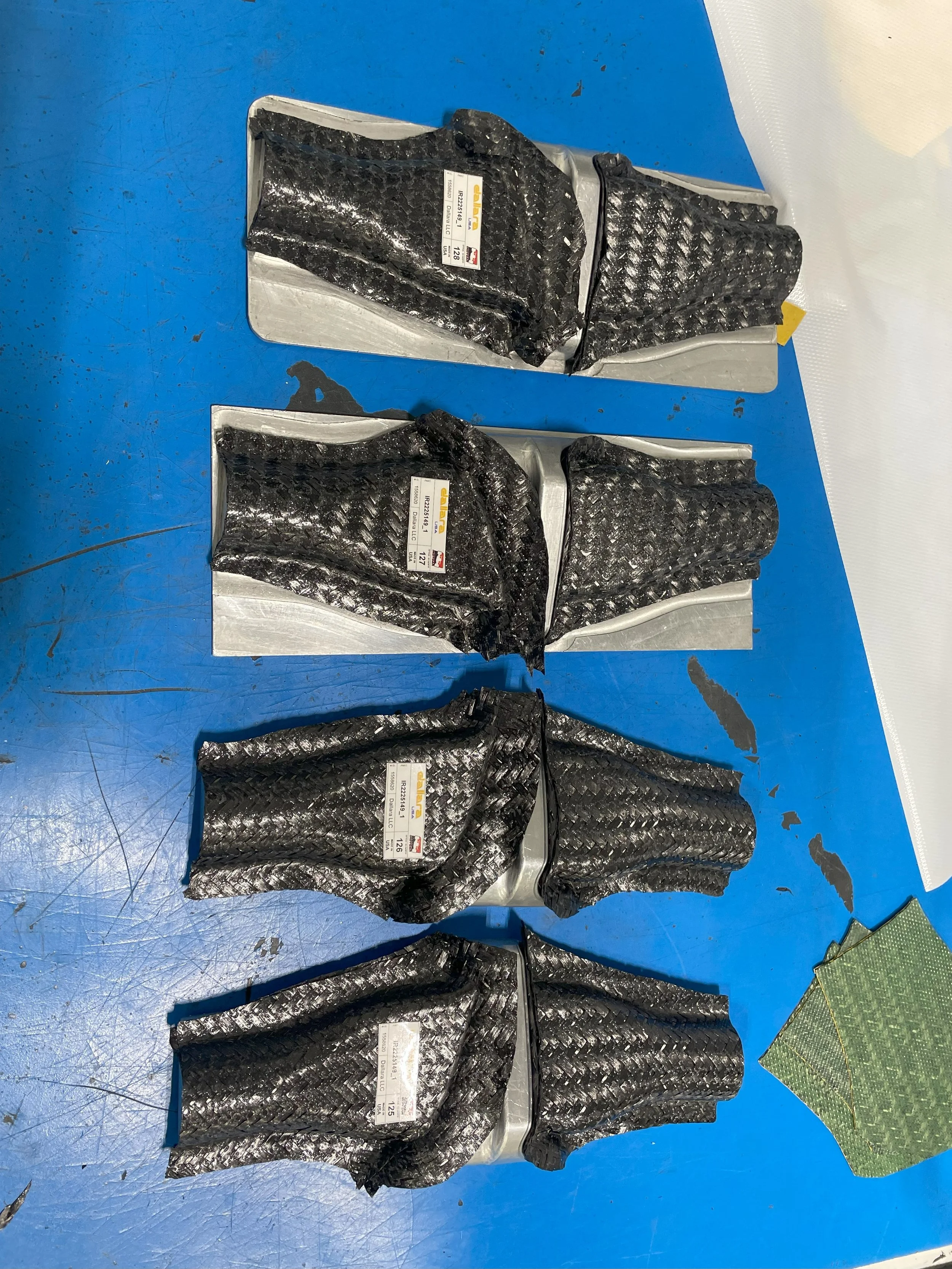 These parts were unique in their manufacturing method, done in a press machine rather than the autoclave. This method of production is significantly faster, though the parts the machine can do are greatly limited by size and complexity.
